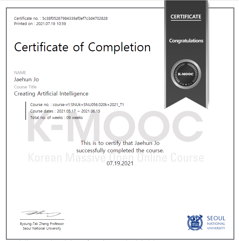 | [K-MOOC] 딥러닝 개론 및 응용(세종대) (0) | 2021.06.17 |