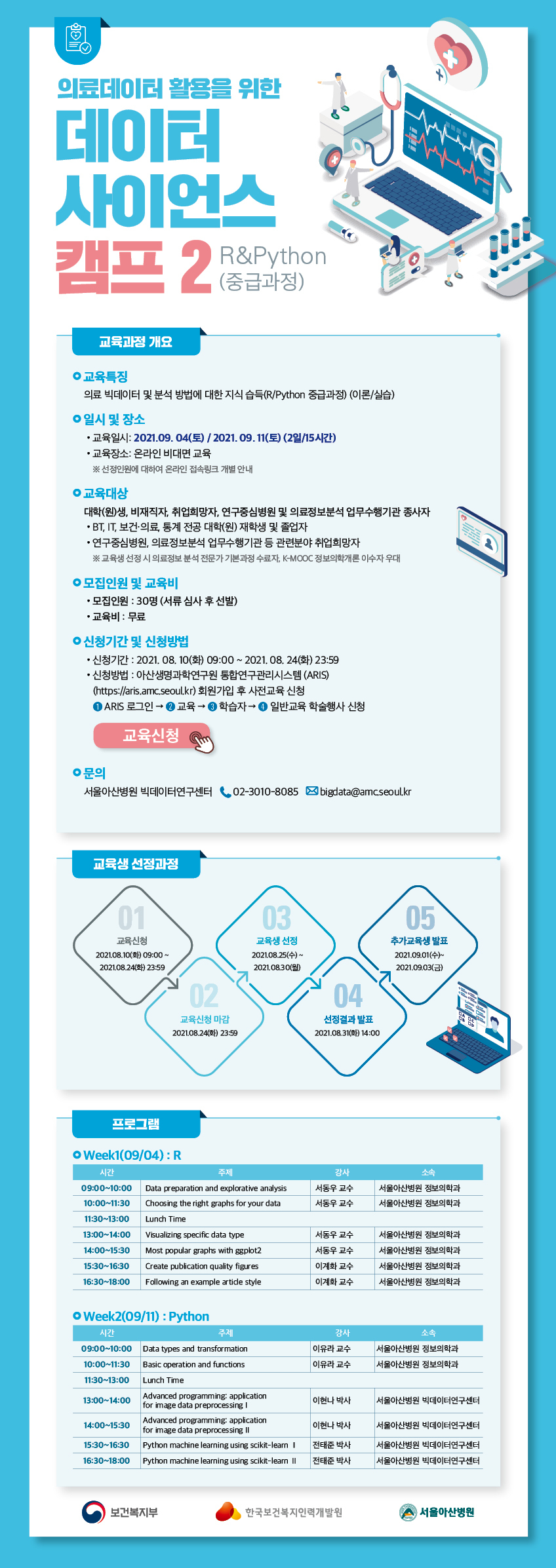 | 2021 서울아산병원 정보의학과/빅데이터연구센터 심포지엄_Asan Digital Healthcare Festival (0) | 2021.09.13 |