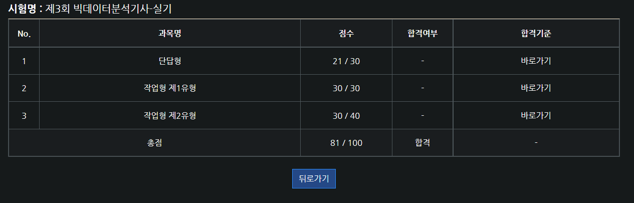 단답형은 너무 지엽적이고 애매한 문제가 많았으며 작업형 제2유형에서는 애매한 문제 설명 때문에 (index 출력 관련) 필자를 비롯한 수많은 응시자들이 시험 응시날 뿐만 아니라 이후로도 불안함을 느끼게 되었다.