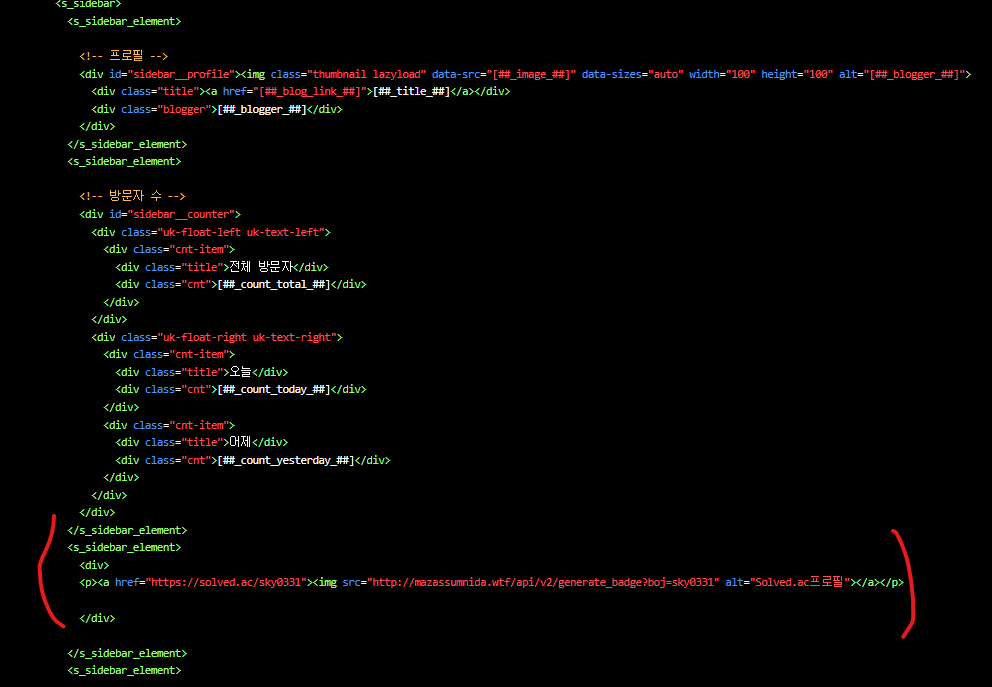 본인은 사이드바에 넣으려고 sidebar_element 사이에 <s_sidebar_element> 태그를 덧씌워 적용해 보았다.