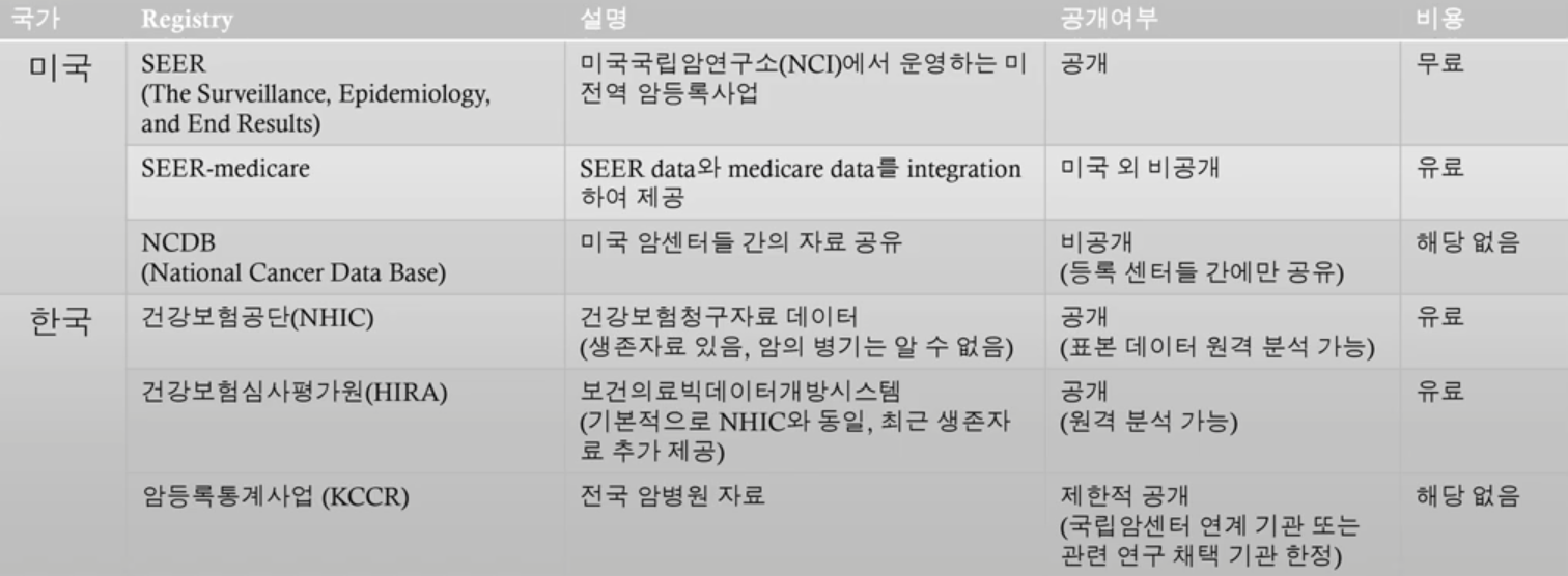 - 미국 에서는 법적으로 새로 진단된 암환자를 registry에 등록해야만 함