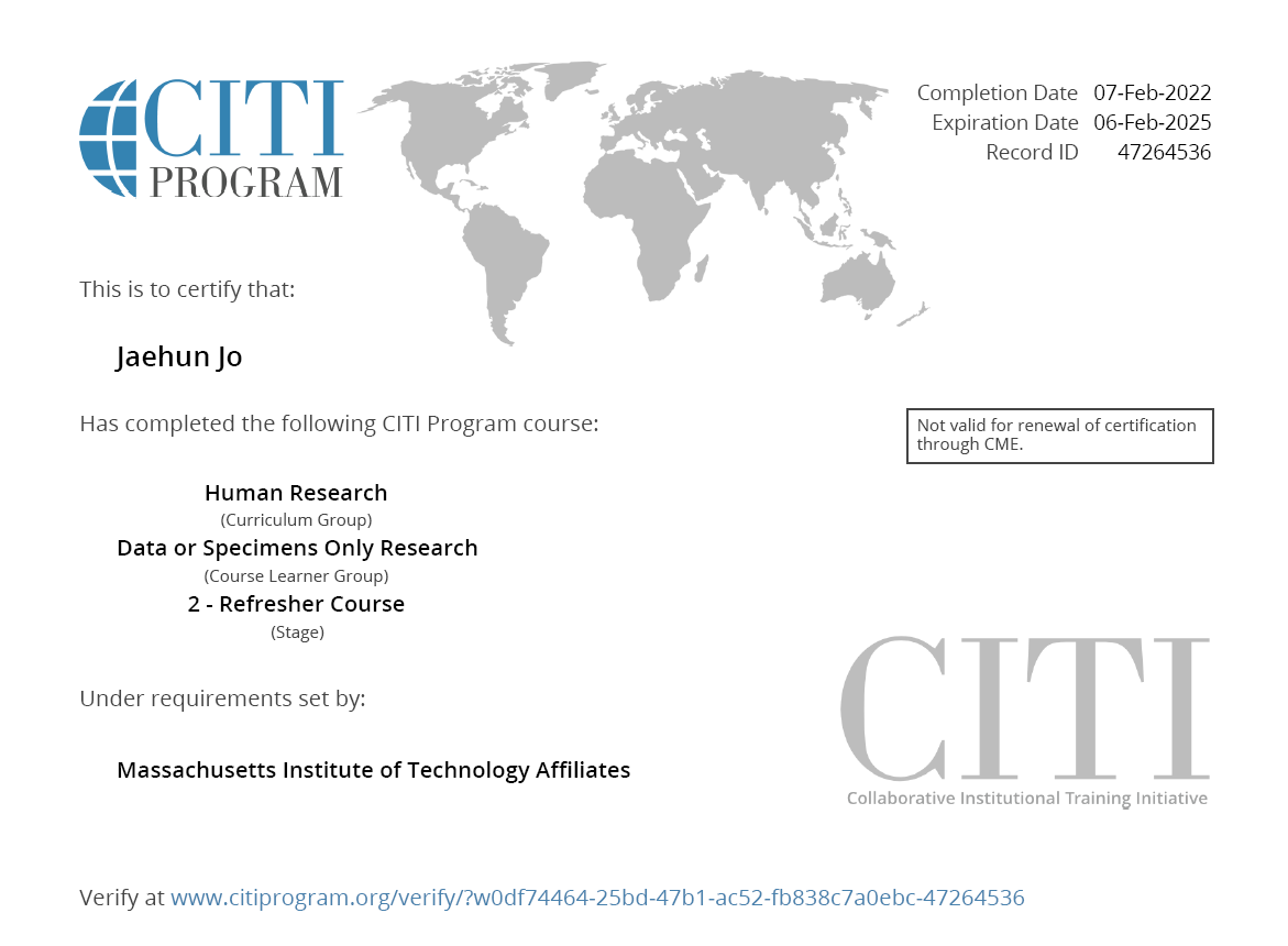 CITI Program (Massachusetts Institute of Technology Affiliates)
