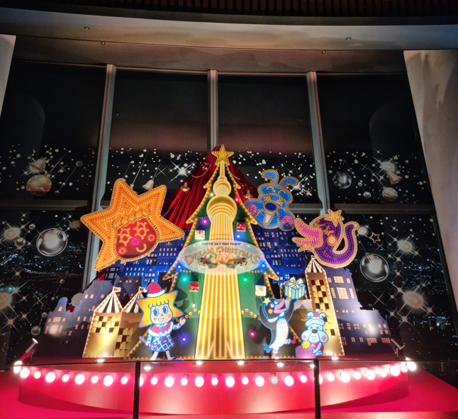 스카이트리로 올라가는 에스컬레이터 옆 조형물. 귀엽다. 벌써부터 크리스마스 컨셉으로 꾸며놓았다. (11월 14일이었음)