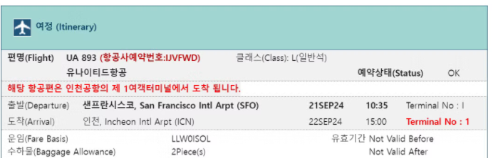 1일차(9/14 토) 인천 → LA (LA 도착 후 자유일정)