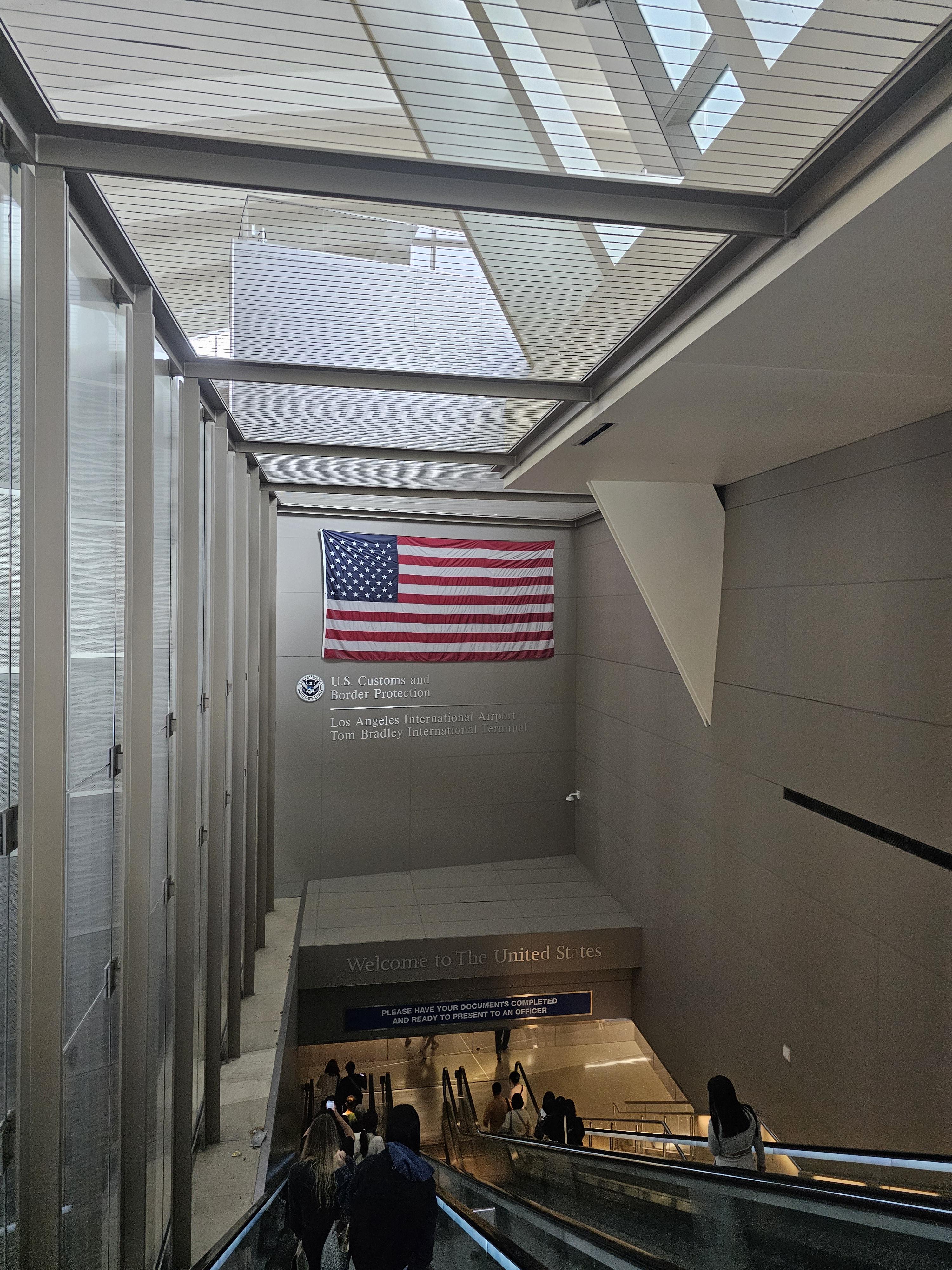 LA 공항 착륙 후 짐 찾으러 가는 길에 성조기가 멋지게 걸려 있다. 나름 유명한 포토스팟인 모양,