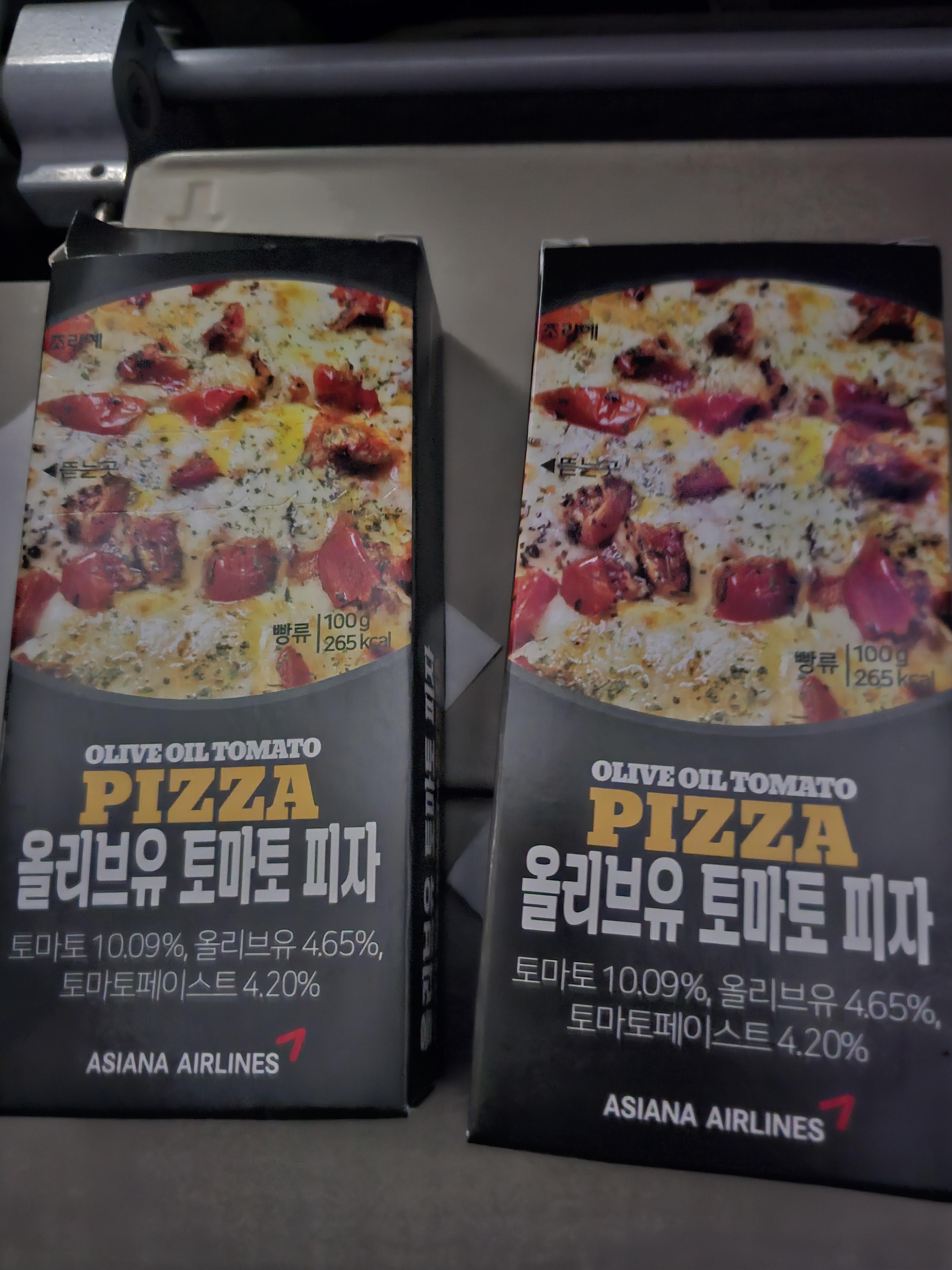 이륙 후 6시간쯤 후에 나온 간식인 올리브유 토마토 피자.