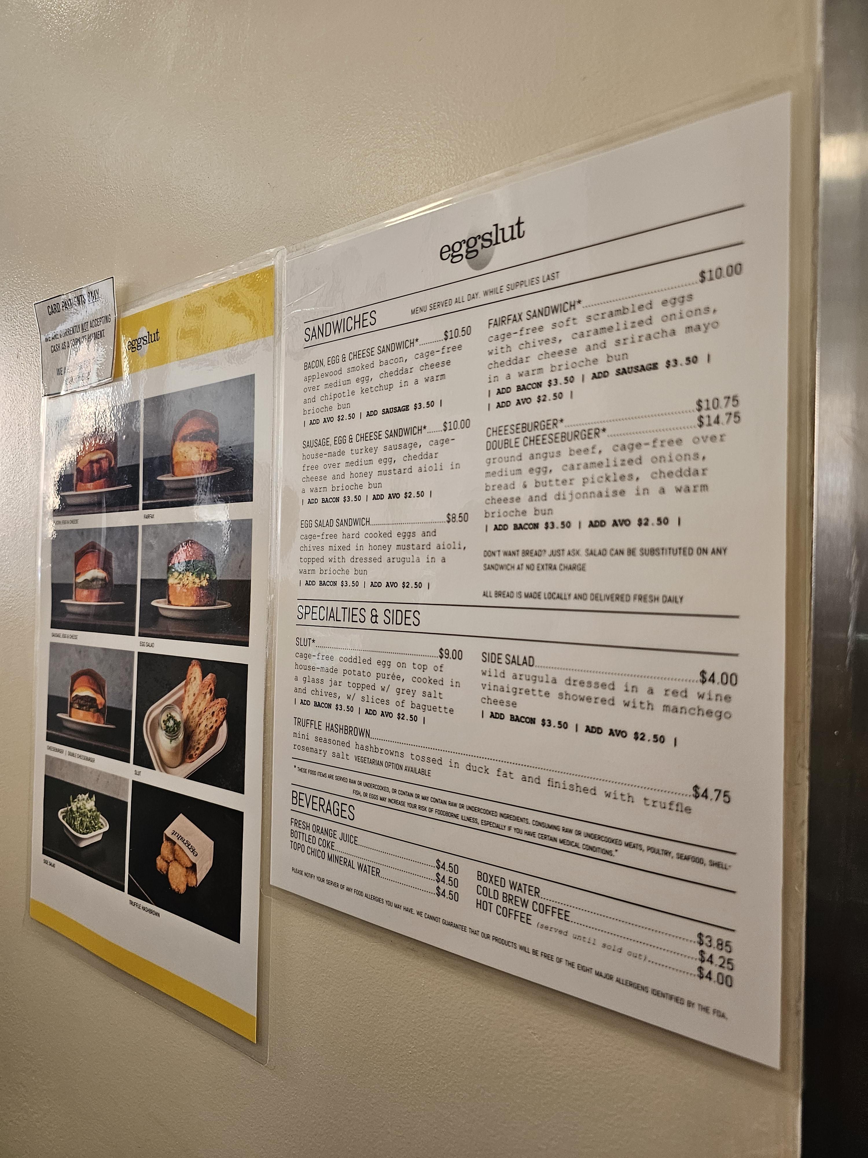 에그슬럿 맛은 훌륭했다. bacon egg cheesse 조금 짜긴 함. fairfax는 딱 적당한 간.