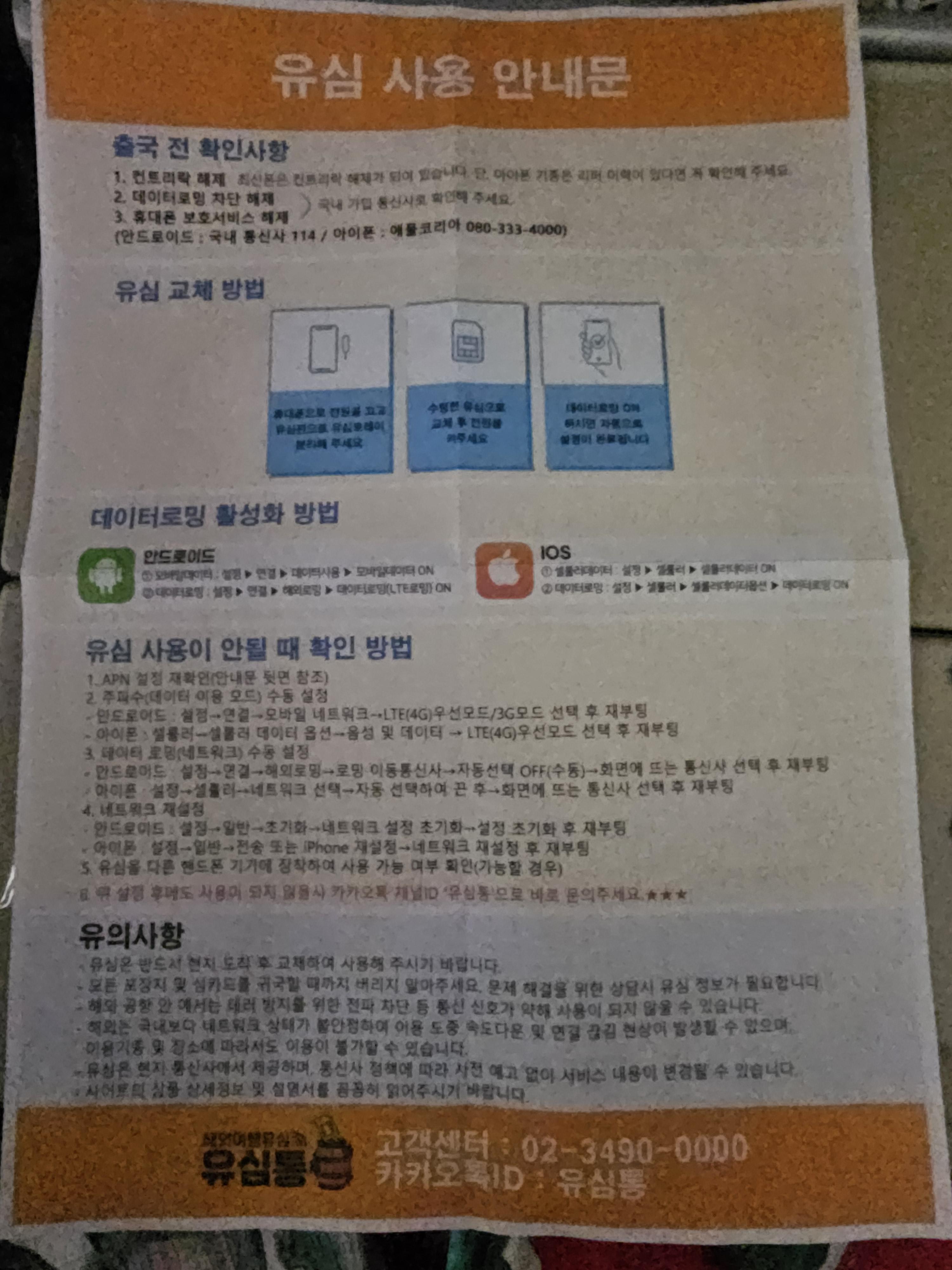 유심통이란 업체에서 유심 구입. 비행기에서 갈아끼웠다. 나는 10일 무제한, 엄빠는 10일 5GB 상품으로 구매. 두 분 다 데이터 걱정 없이 넉넉하게 쓰셨다. 가격은 각 3만 원 정도.