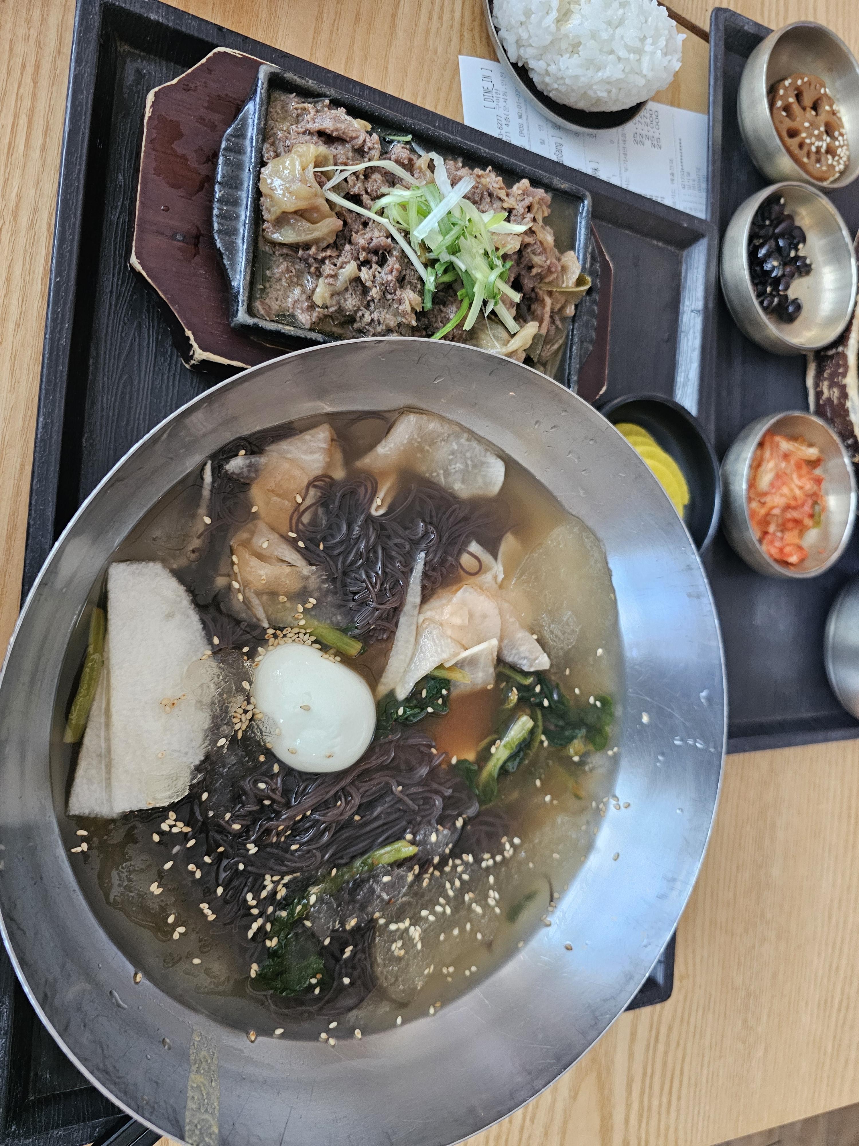 캐리어 바퀴 수리, 환전, 유심칩 수령 이후 출국수속하고 들른 한식집.