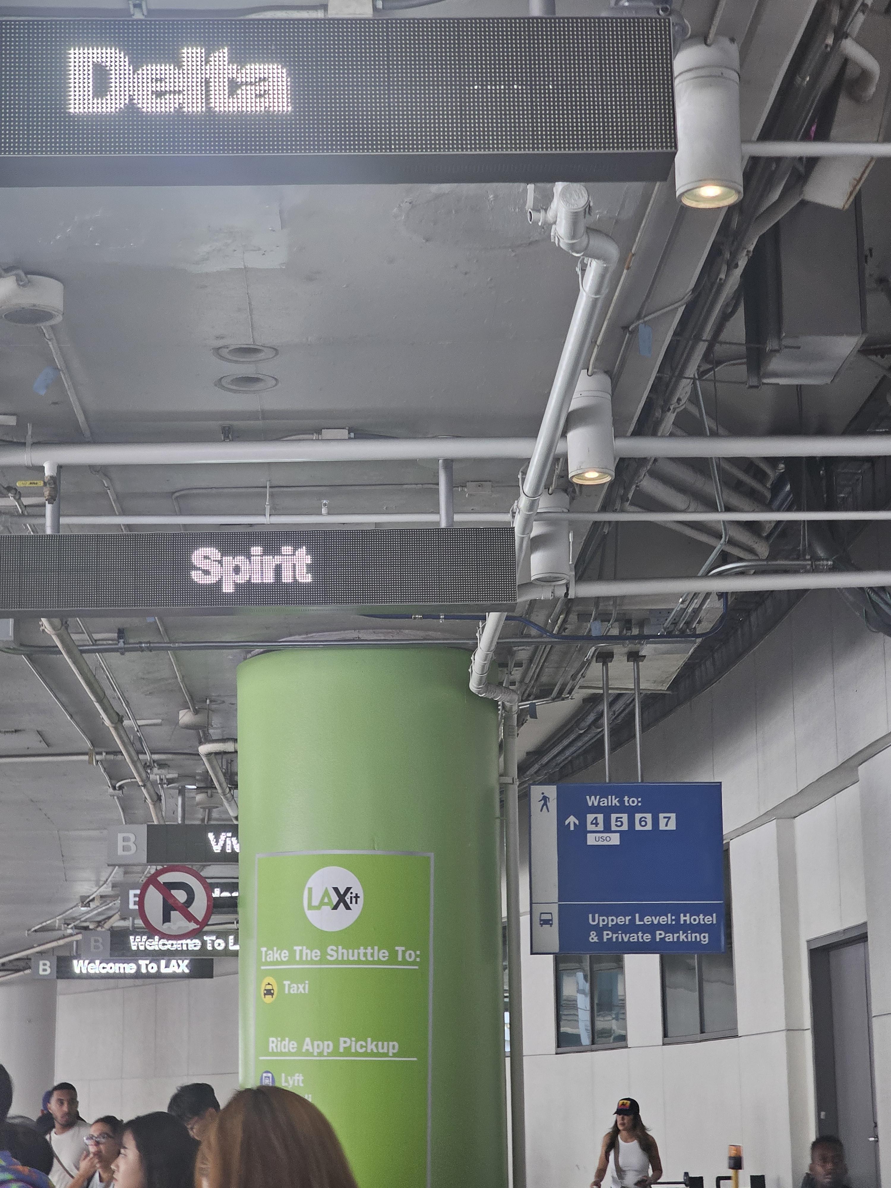 LAX (LA공항)에서는 우버 타는 곳이 따로 있는데, 국제선 터미널과 거리가 꽤 있어서 도보로는 이동이 힘들고 무료 셔틀을 타야만 한다. 초록색 LAXit 표시만 따라가면 된다는 후기를 보고 금방 찾아갔다. 셔틀로 5~10분이면 목적지에 도착한다.