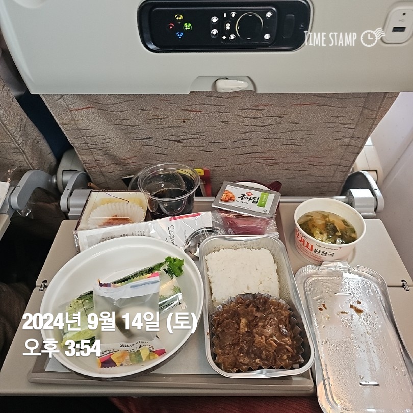이륙 후 약 1시간만에 제공된 첫 번째 기내식은 쌈밥. 익히 들은 대로 상당히 맛있었다.