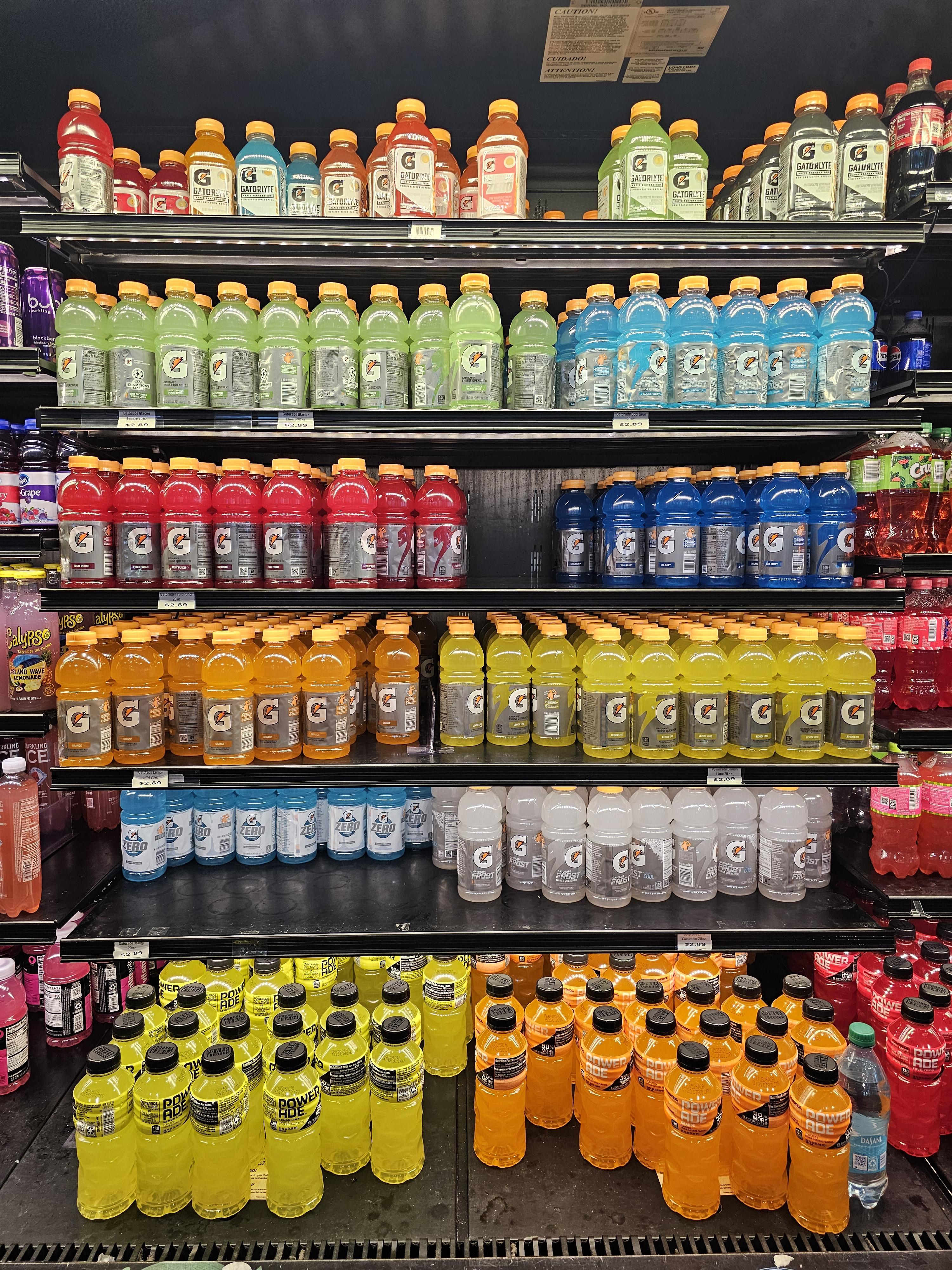 목말라서 회색 게토레이를 샀다. 한국보다 훨씬 다양하다.