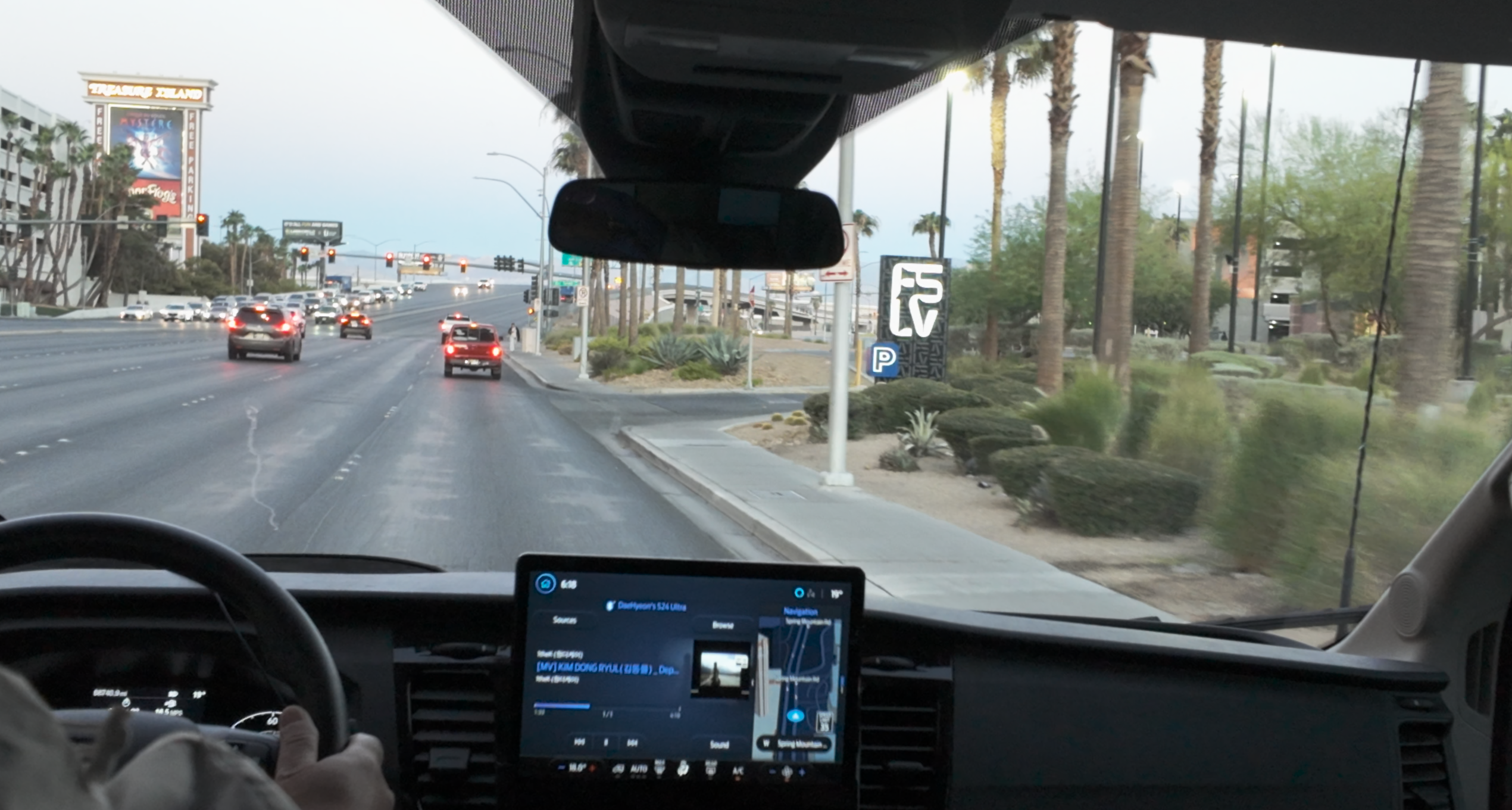 가운데 있는 차가 우리의 밴.