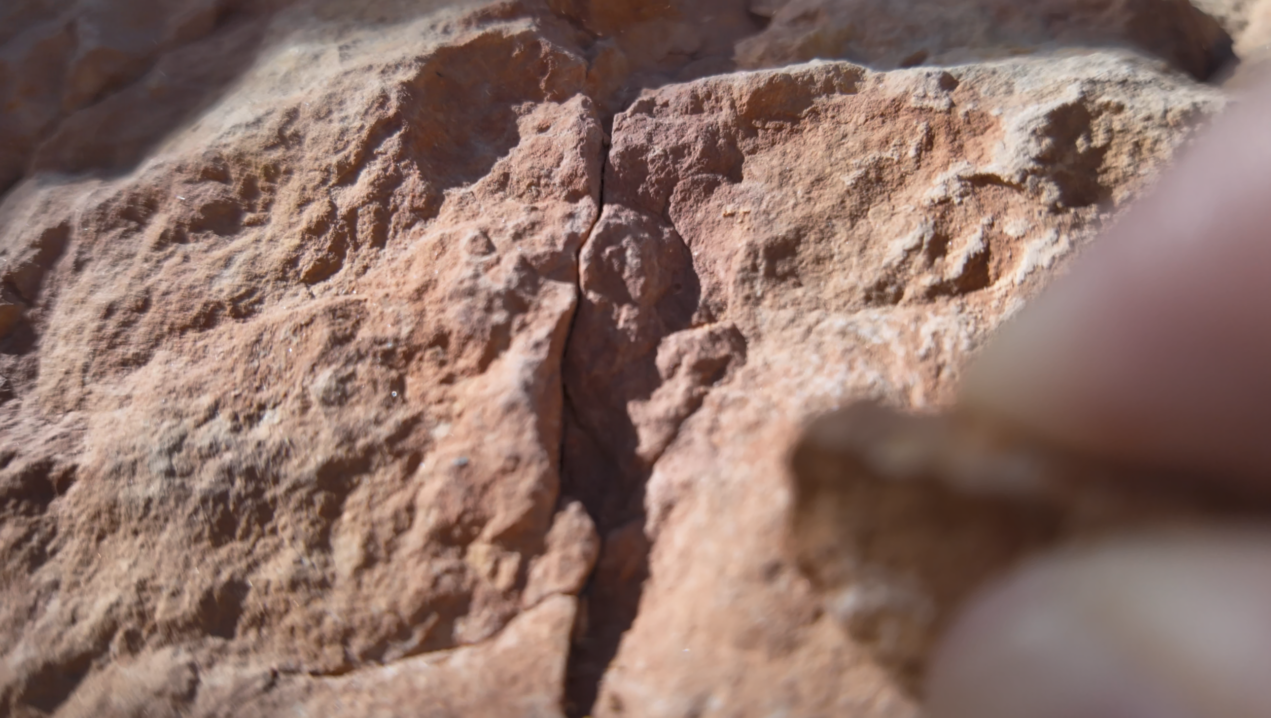 모두 사암이라고 함. 돌을 하나 잡아 긁어보았더니 붉은 모래가루가 나왔다.