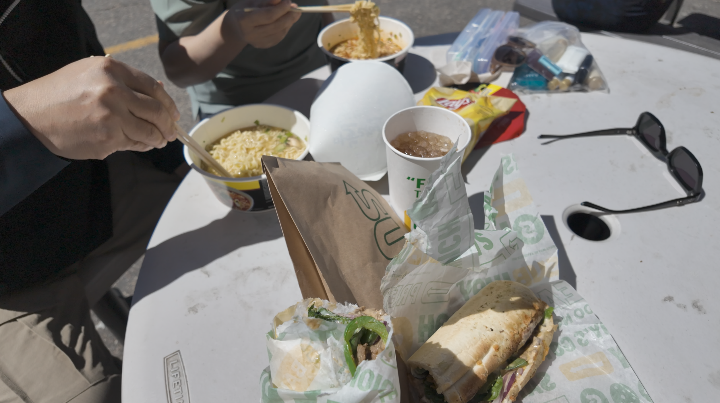 엄빠는 서부왜이보다 라면이 땡긴다며 옆 마트에서 한국컵라면을 구입하셨다.