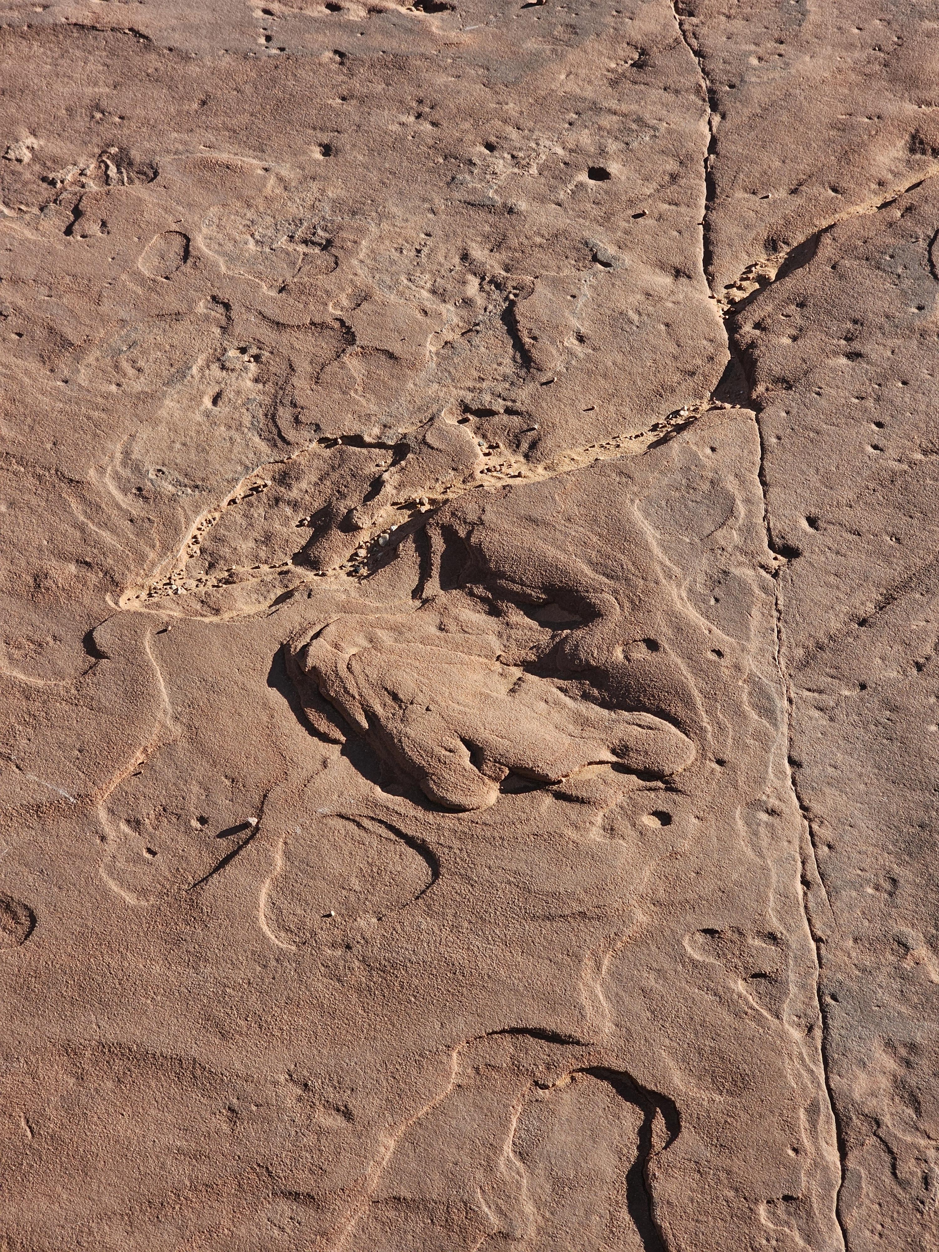 다시 여행사 건물로 돌아가는 길에 공룡 발자국도 보았다.