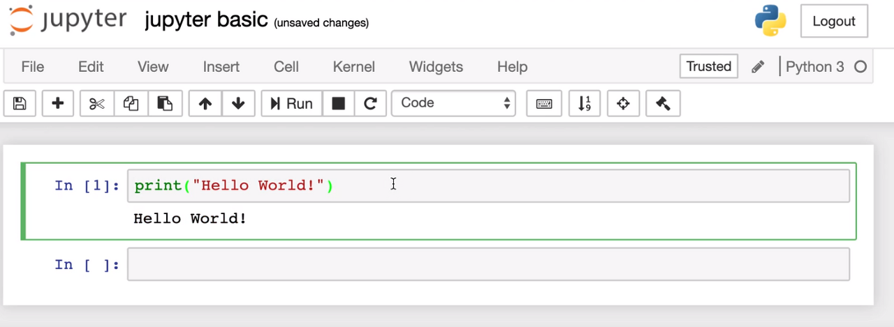 주피터 노트북을 생성해 보았으면 "Hello World!"를 프린트 해봐야겠죠?