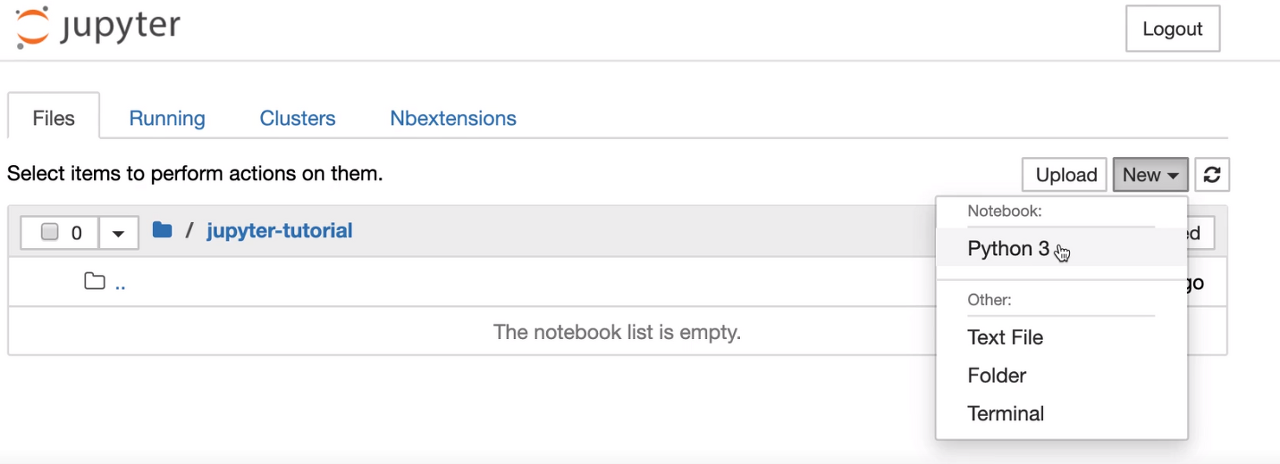 주피터 노트북을 실행하신다음 작업을 하실 폴더를 새로 만들어 주시는 것을 권장드립니다. 강의 영상에서는 'jupyter-tutorial'로 폴더를 만들었습니다.