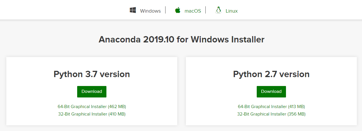 아나콘다를 설치하려면 아래의 링크로 들어가서 자신의 OS에 맞게 다운받아서 설치하실 수 있습니다.