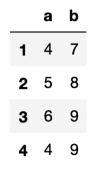 --> "a" 컬럼에 있는 값이 4가 두 개가 있기 때문에 그 값의 평균값이 적용이 됩니다.