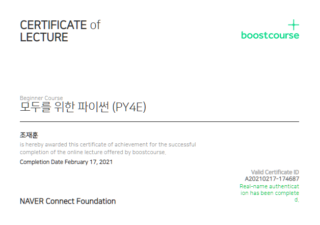 'Certificates > Edwith(Boostcourse)' 카테고리의 다른 글