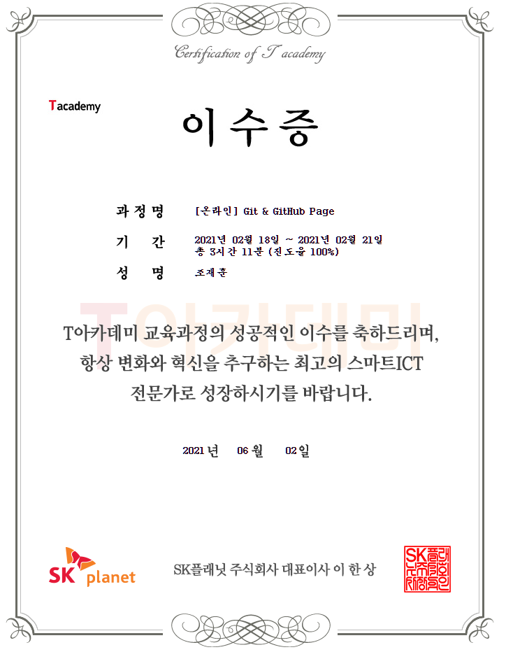 'Certificates > T academy' 카테고리의 다른 글